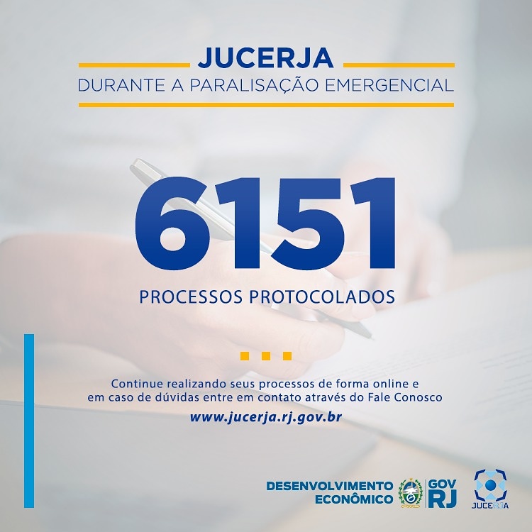 Durante a paralização emergencial para a prevenção ao Coronavírus, a JUCERJA seguiu funcionando na forma digital. Nos 10 dias que esteve com a sede fechada (de 26/03 a 04/04), a equipe protocolou um total de 6.151 processos.